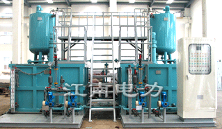 原水(生水)加凝聚劑,加助凝劑裝置;循環(huán)水加穩(wěn)定劑 (緩蝕劑),加阻垢劑,加殺菌裝置;起動(dòng)鍋爐房加氨,加磷酸鹽裝置;凝汽器硫酸亞鐵鍍膜裝置.單元式的組合形式一般為一箱一泵,一箱二泵,二箱二泵,二箱三泵 ,其系統(tǒng)與爐內(nèi)加藥裝置類(lèi)同.