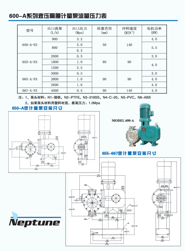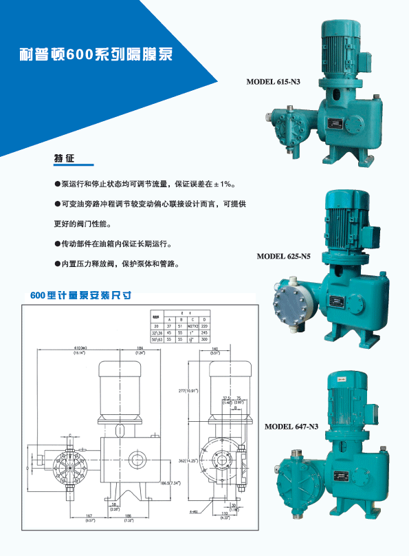 耐普頓(NPD)計量泵系列 >> 耐普頓600系列