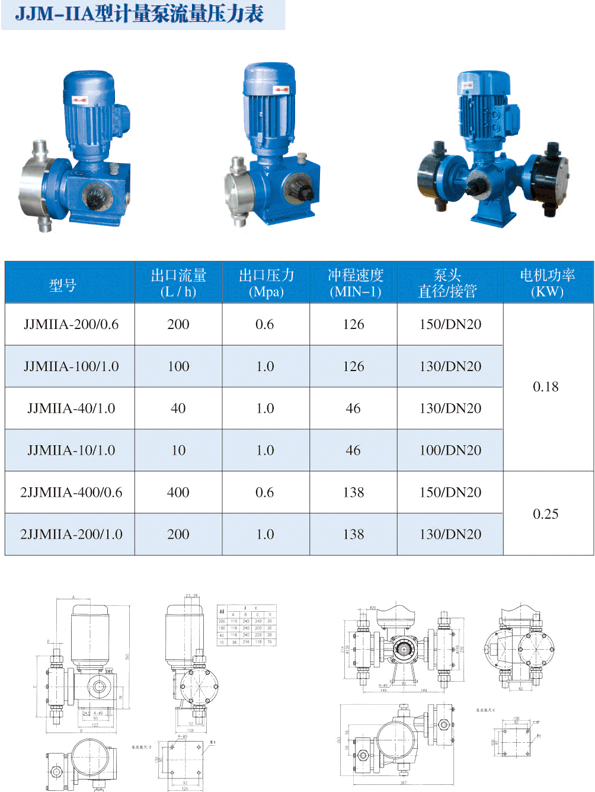 計量泵 >> JJM-ⅡA型計量泵 最大流量為400L/H,最高耐壓1.0Mpa